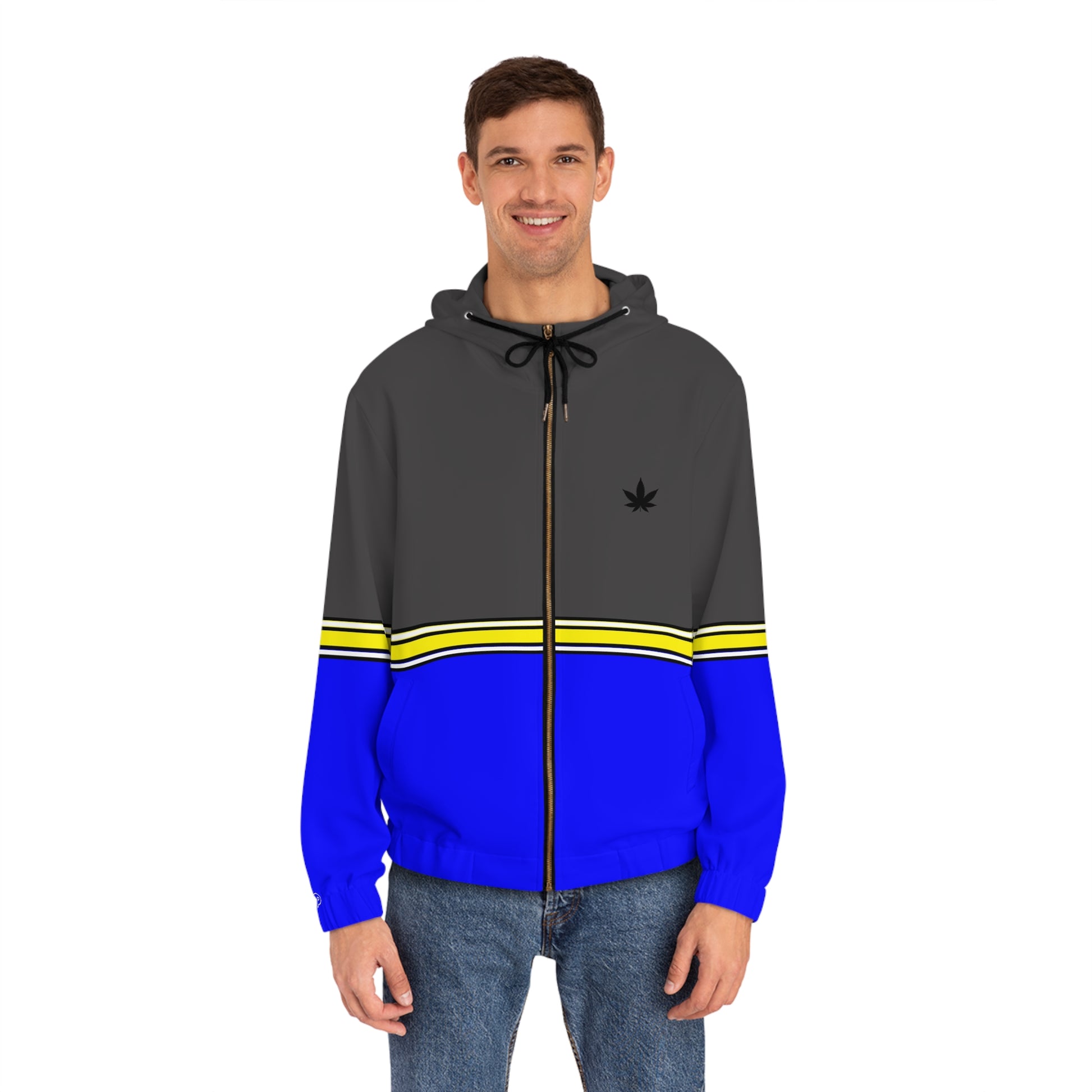 Blue Stripe Full-Zip Hoodie — Casual Streetwear Jacket with Leaf Logo