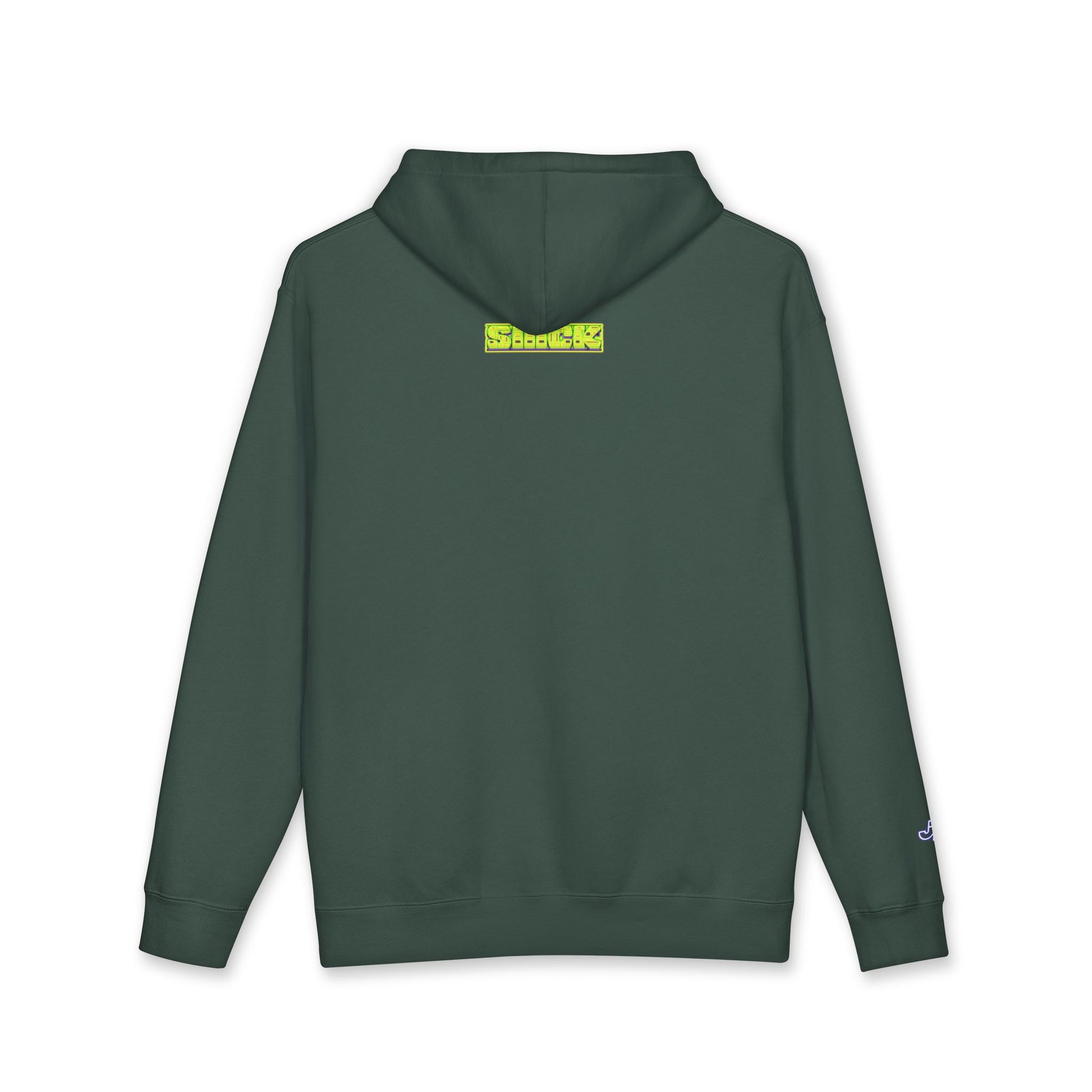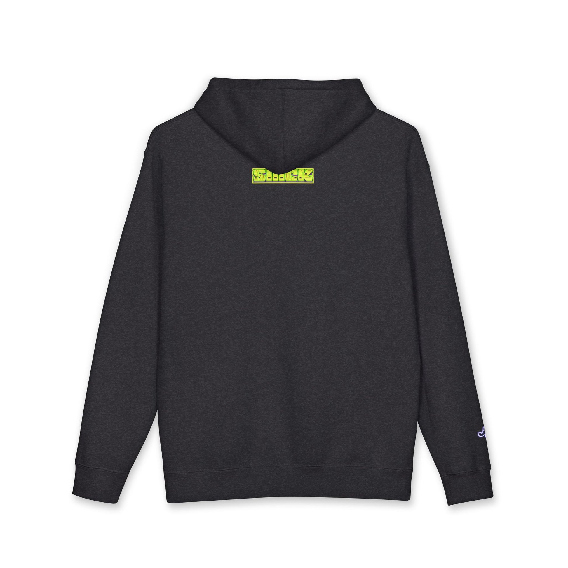 A heavyweight hooded sweatshirt with a laid-back, streetwise vibe. The front features a single green leaf motif with hand-drawn texture, and a small neon-accented logo sits low on the back neckline. Built for warmth and easy layering, the soft fleece-lined hood and substantial 10 oz fabric give this hoodie a comfortable, grounded feel. It wears like a trusted staple—broken-in without being worn-out—and pairs naturally with denim, joggers, or a favorite beanie when you want to move through cool evenings with casual confidence. The relaxed cut keeps movement easy and the ribbed cuffs and waistband hold shape while adding a neat finish. This is for someone who values tactile comfort and bold, slightly offbeat graphics that read as personal style, not loud branding.